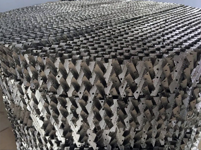 絲網波紋填料是用于氣液傳質分離塔設備中的填料,是由不銹鋼絲網壓制成的若干波紋片,按一定的直徑要求垂直疊合組裝成的盤狀規整填料。相鄰波紋片的波紋傾斜方向相反,上下相鄰填料盤的波紋片成90°交叉。